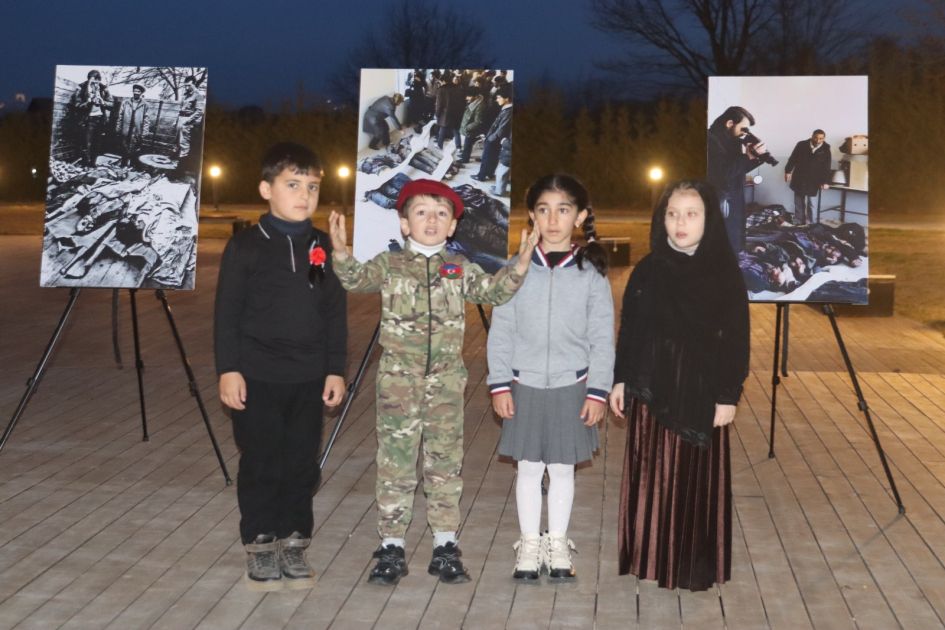 Fləş-mob çərçivəsində Xocalı dəhşətini əks etdirən fotosərgi də təşkil olunub. Tədbir şagirdlərin “Xocalı azaddır!” və “Xocalını unutmadıq!” şüarları səsləndirərək bu gün yenidən qurulan, uşaq gülüşləri ilə dolan, doğma sakinlərinin nəfəsi ilə isinən Xocalıya həsr olunmuş “Ay Xocalı” mahnısının sədaları altında düzülərək, “Xocalı” sözünü yazıb, qurbanları yad etməklə başa çatıb.