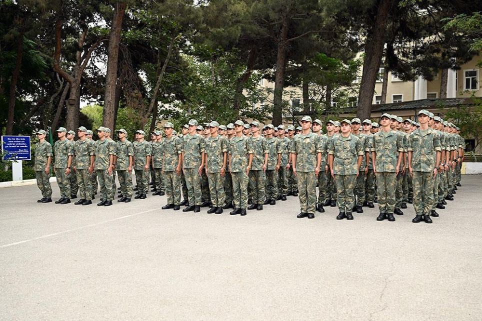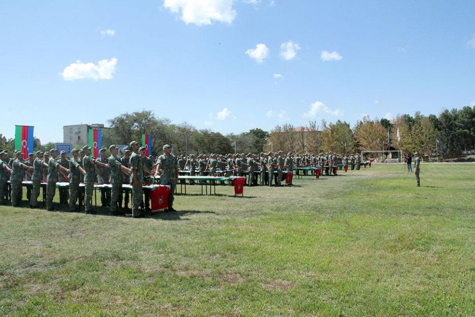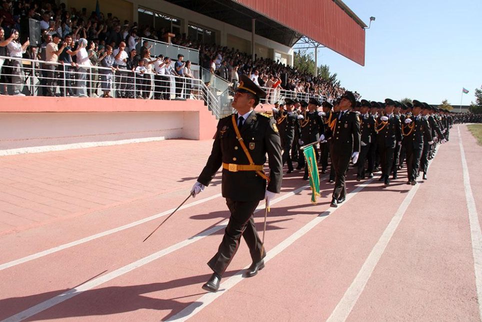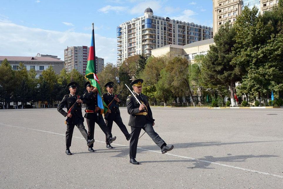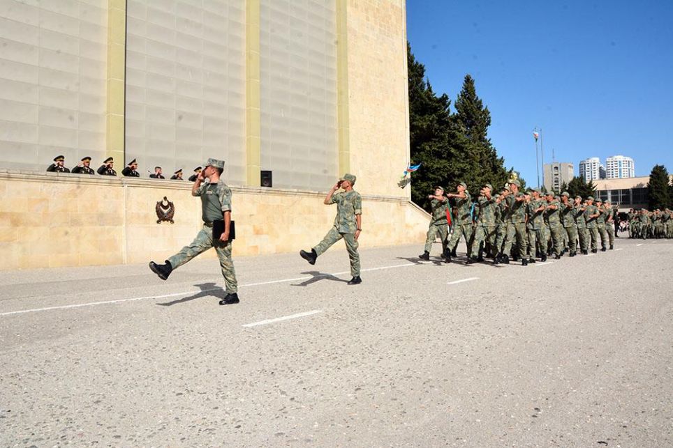 Sonra kursantlar təntənəli şəkildə Vətənə sədaqət andı içib, hərbi marşın sədaları altında tribuna önündən keçiblər.
