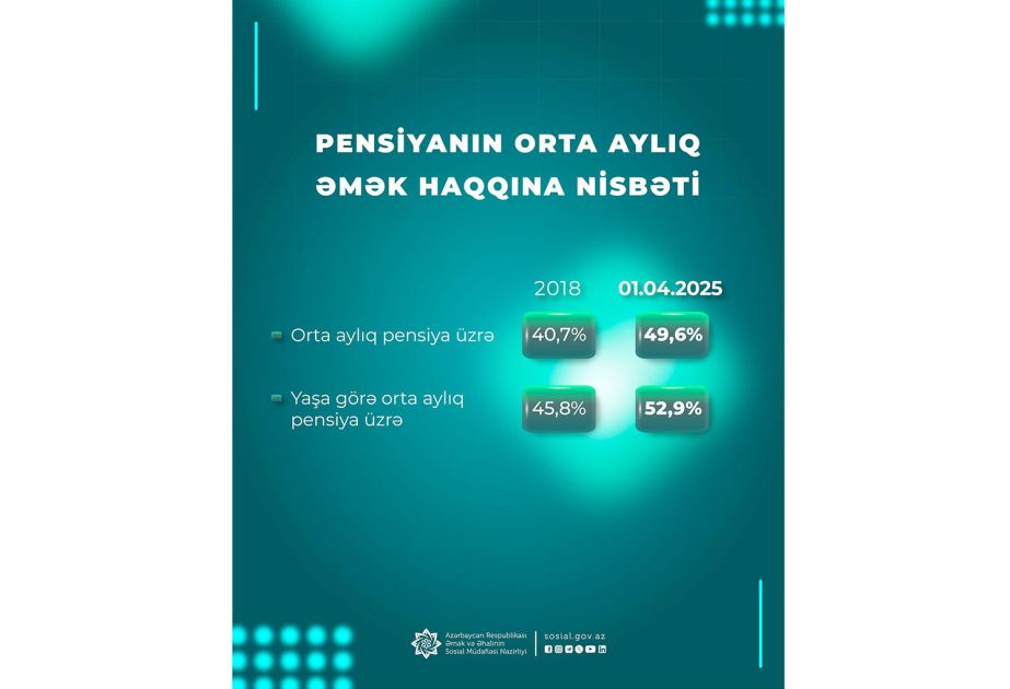 Son illər davamlı pensiya artımları orta aylıq pensiyanın orta aylıq əmək haqqına nisbətinin (əvəzetmə əmsalı) qabaqcıl beynəlxalq normalara uyğunlaşdırılmasında mühüm irəliləyişə imkan verib.