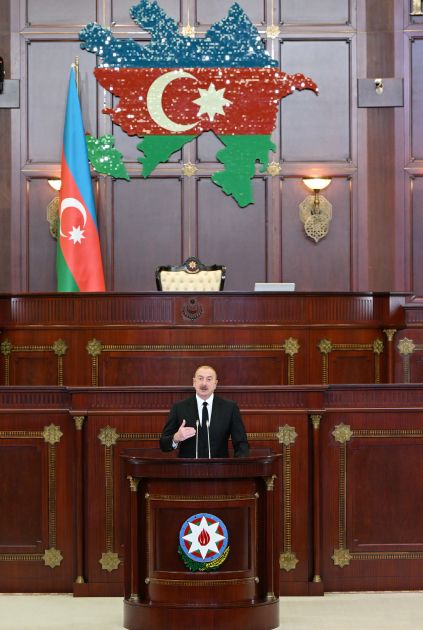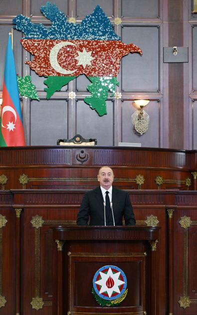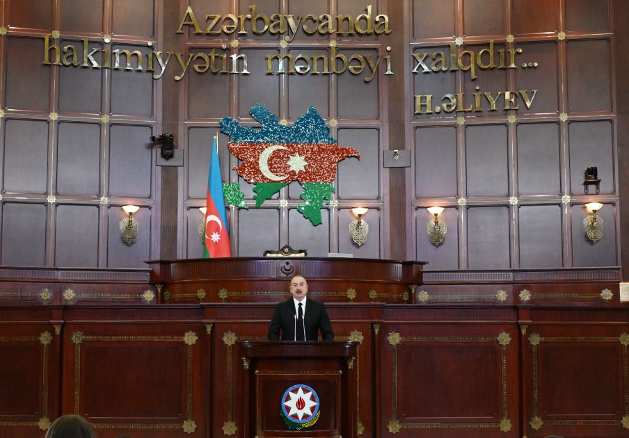 İkinci Qarabağ müharibəsi və antiterror əməliyyatı nəticəsində suverenliyimizin tam bərpa edilməsi ölkə qarşısında yeni imkanlar, yeni üfüqlər açır. 30 ilin işğalı arxada qaldı. İndi ölkəmiz genişmiqyaslı quruculuq, inkişaf işinə qədəm qoymuşdur və nəticələr də göz qabağındadır. Son 3-4 il ərzində ölkəmizin beynəlxalq mövqeləri daha da möhkəmləndi. İkinci Qarabağ müharibəsinin və antiterror əməliyyatının nəticələrini biz bütün dünyaya qəbul etdirə bildik. Halbuki bunu qəbul etmək istəməyən ölkələr və dairələr var idi, bu gün də var. Biz hamımız bunu yaxşı görürük ki, bizə qarşı əsassız ittihamlar, ikili standartlar əsasında qurulmuş ittihamlar davam edir. Ancaq bu, nə bizim iradəmizə, nə xalqımızın iradəsinə heç cür təsir edə bilməz.