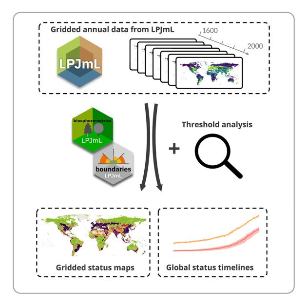 Tədqiqatda 1600-cü ildən başlayaraq hər gün daxil olan su, karbon və azot axınını simulyasiya edən qlobal biosfer modelindən istifadə edilib. Məlumatlara görə, ekosistemlərdə həyəcanverici dəyişikliklər hələ XVII əsrdə orta enliklərdə qeydə alınıb və 1900-cü illə qədər sənayeləşən torpaqların 37%-ni yerli zərərli zonadan kənara, 14%-ni tam risk zonasına çıxarıb. Bu gün bu rəqəmlər kənd təsərrüfatına köməklik olaraq 60% və 38%-ə yüksəlib.