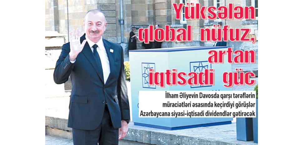 Prezidentin Davosda qarşı tərəfin təşəbbüsü, xahişi ilə keçirdiyi görüşlər, apardığı müzakirələr yaxın zamanlarda Azərbaycana siyasi, iqtisadi dividendlər gətirəcək.