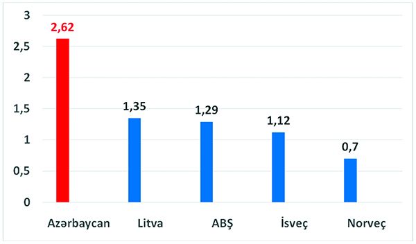 Şəkil 1-də Azərbaycan Respublikası ilə yanaşı təmsil olunmuş ölkələr enerji transformasiyası baxımından dünya liderləridir: İsveç - dünya üzrə, Litva - keçmiş SSRİ ölkələri ilə müqayisədə, Norveç isə neft və qaz ixrac edən ölkələr arasında. Göründüyü kimi, Azərbaycan Respublikası elmə əsaslanan innovativ dövlət idarəçilik texnologiyalarının tətbiqi nəticəsində "yaşıl enerji"yə keçid proseslərinin idarə edilməsində ən yüksək səmərəliliyi nümayiş etdirir və alıcılıq qabiliyyəti pariteti nəzərə alınmaqla hər 1000 ABŞ dollarına 2,62 dəyərində enerji transformasiya indeksi yaradır. Dövlət idarəçiliyində səmərəlilik universal bir prosesdir və hazırda beşilliyini qeyd etdiyimiz Vətən müharibəsinin parlaq Zəfər ilə cəmi 44 günə bitməsi də yüksəksəviyyəli elmə əsaslanan idarəetmənin nəticəsidir.