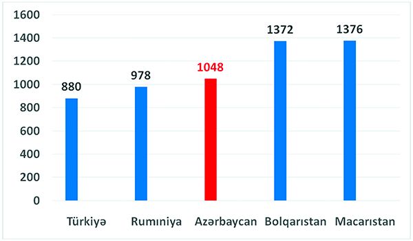 Şəkil 2-dən göründüyü kimi, son on ildə ölkədə orta pensiya hər il artmaqdadır. Bu artım 2020-ci ildən sonra daha da sürətlidir. Beynəlxalq müqayisələr göstərir ki, ölkədə həyata keçirilən uğurlu sosial siyasət göstəricisi olan orta pensiyanın səviyyəsi bir sıra Avropa İttifaqında təmsil olunmuş ölkələr səviyyəsindədir (Şəkil 3).