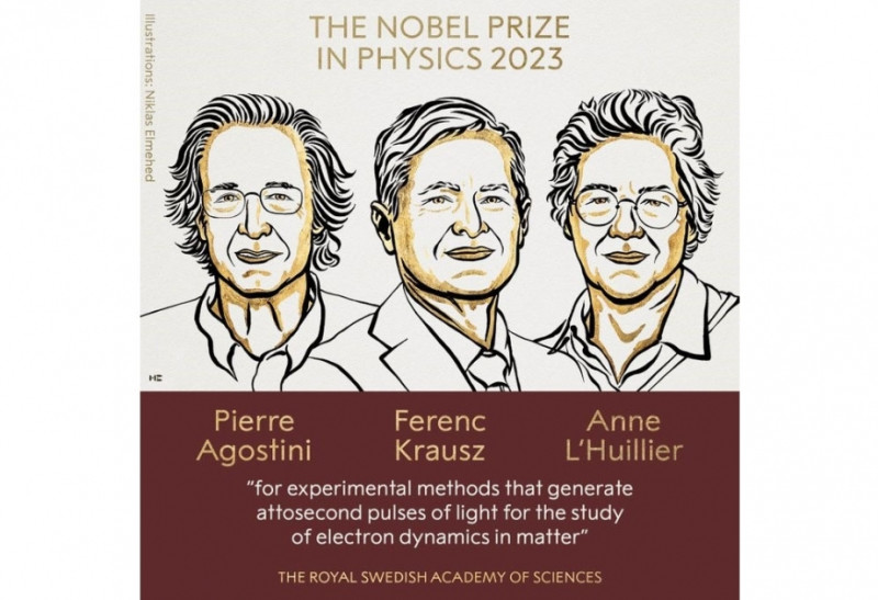 AZƏRTAC xəbər verir ki, Nobel Komitəsi oktyabrın 3-də ABŞ-ın Ohayo Dövlət Universitetindən Pyer Aqostini, Maks-Plank Kvant Optika və Münhen Lüdviq-Maksimilian Universitetindən macar-avstriyalı alim Ferens Krauz və İsveçin Lund Universitetindən fransız Ann L`yülyenin 2023-cü il üzrə fizika sahəsində Nobel mükafatına layiq görüldüklərini elan edib. Onlar bu mükafata “maddədə elektronların hərəkətini öyrənmək üçün attosaniyəlik işıq impulsları yaradan eksperimental üsullar üçün” tədqiqata görə layiq görülüblər.