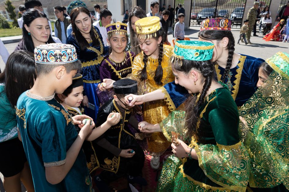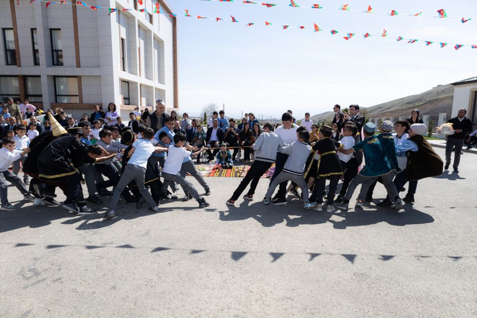 Sonda məktəbin həyətində bayram tonqalı qalanıb, qonaqlar, müəllimlər və şagirdlər "Cəngi" sədaları altında rəqs ediblər.