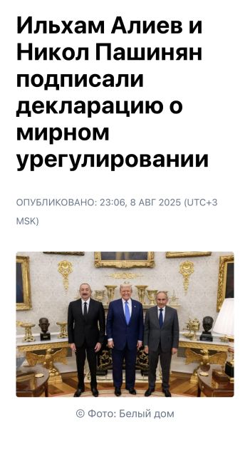 “İnterfaks” Azərbaycan Prezidentinin fikirlərinə istinadla bildirir ki, sülh müqaviləsinin rəsmi imzalanması gecikdirilməməlidir, O, avqustun 8-ni Azərbaycan və Ermənistan arasında dövlətlərarası münasibətlərdə tarixi gün adlandırır. Prezident İlham Əliyev ABŞ ilə strateji tərəfdaşlığın davam etdirilməsinin vacibliyini vurğulayıb və əməkdaşlıq xartiyasının müzakirəsi üçün Azərbaycan nümayəndə heyətinin formalaşdığını bildirib.