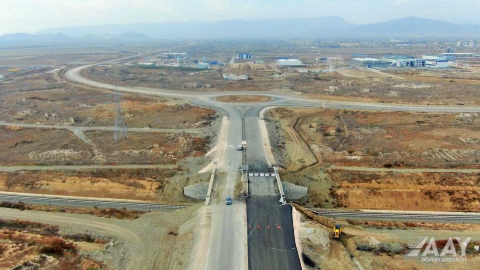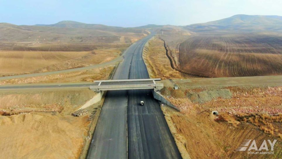 Birinci texniki dərəcəli olacaq avtomobil yolunda torpaq işlərinin icrası çərçivəsində yararsız qruntun çıxarılması, yatağın genişləndirilməsi, 26.5 metr enində yeni yol yatağının, yol əsasının tikintisi, suların ötürülməsini təmin etmək məqsədilə müxtəlif ölçülü suötürücü borular, su keçidləri, həmçinin zəruri olan yerlərdə yeraltı və kommunikasiya xətləri üçün nəzərdə tutulan ehtiyat keçidlərinin inşası tamamlanıb, asfalt-beton örtüyünün alt qatı döşənib.