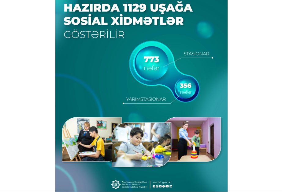 Əmək və Əhalinin Sosial Müdafiəsi Nazirliyinin tabeliyində Sosial Xidmətlər Agentliyi tərəfindən hazırda 1129 uşağa sosial xidmətlər göstərilir.