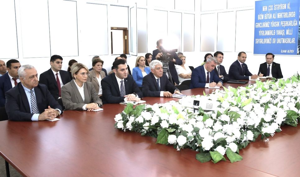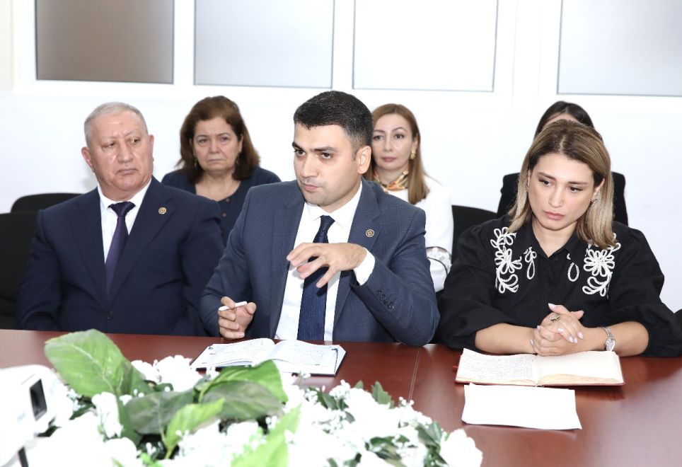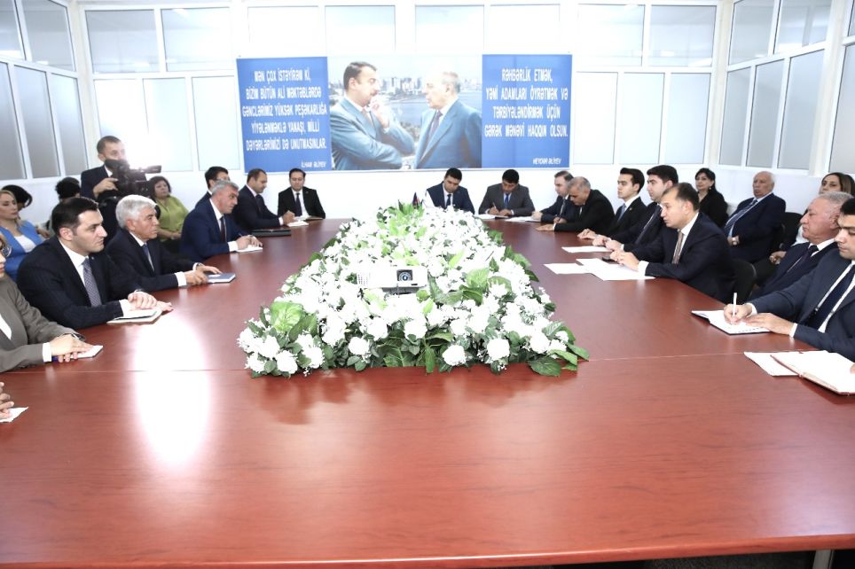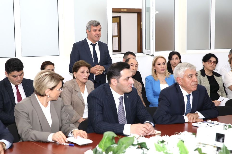 Sonra Akademiyanın professor-müəllim heyəti ilə keçirilən görüşdə rəhbərlik və müəllimlərlə söhbət aparılıb, tədrisin vəziyyəti barədə danışılıb. AHİK sədri bildirib ki, ölkəmizdə digər sahələr kimi, təhsil sahəsi də cənab Prezident İlham Əliyevin diqqət və qayğısı ilə davamlı olaraq inkişaf etdirilir və bu istiqamətdə aparılan islahatlarla beynəlxalq standartlara uyğunlaşdırılıb. O həmçinin Birinci vitse-prezident Mehriban xanım Əliyevanın və onun rəhbərlik etdiyi Heydər Əliyev Fondunun Azərbaycanda təhsilin inkişafı naminə uğurla reallaşdırdığı layihələrdən bəhs edib.