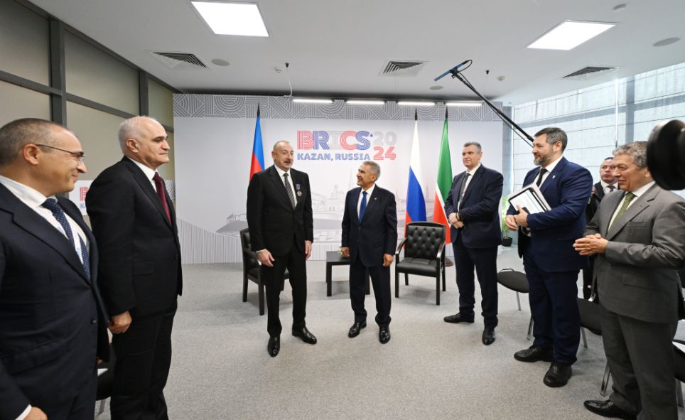 -Rüstəm Nurqaliyeviç, sağ olun. Bir daha qardaş torpaqda olmağıma şadam. İlk növbədə, Sizi və Tatarıstan Respublikasının bütün sakinlərini bu əlamətdar hadisə - BRICS sammitinin, həmçinin “BRICS+”un keçirilməsi münasibətilə təbrik etmək istərdim. Bu, Rusiya Federasiyası rəhbərliyinin respublikaya, şəxsən Sizə, Tatarıstan vətəndaşlarına xüsusi münasibətinin təzahürüdür, həmçinin Tatarıstanın Sizin rəhbərliyinizlə nail olduğu potensialın göstəricisidir. Çünki belə bir irimiqyaslı sammitin keçirilməsi, əlbəttə ki, tədbirlərin, dövlət başçılarının ikitərəfli görüşlərinin təşkili üçün resursların, infrastrukturun, o cümlədən mehmanxana şəbəkəsinin olmasını tələb edir. Ona görə də əvvəlcədən səmimi təbriklərimi çatdırıram. Əminəm ki, hər şey ən yüksək səviyyədə keçəcək.