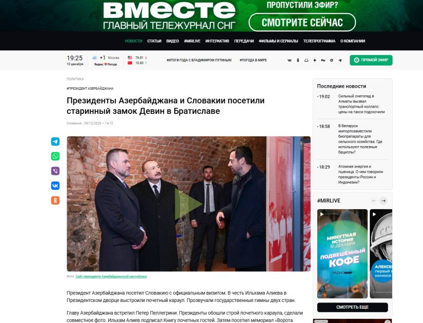 “Krasnaya vesna”, “TASS”, “Vestnik Kavkaza” informasiya agentliklərinin, “MİR” telekanalının, “OilCapital”, “Finmarket”, “EADaily” və digər nəşrlərin materiallarında əsas vurğu Bakı ilə Bratislava arasında əməkdaşlığın genişlənməsi, qarşılıqlı maraqlar və enerji təhlükəsizliyi məsələlərinin müzakirəsinə edilib. Qeyd olunur ki, səfər çərçivəsində xarici siyasət və ikitərəfli əməkdaşlıq məsələləri müzakirə edilib, danışıqların konstruktiv ab-havada keçdiyi və Bratislava ilə Bakının əlaqələrinin güclənməsinə töhfə verdiyi vurğulanıb. Materiallarda Azərbaycan Prezidenti İlham Əliyev və Slovakiya Prezidenti Peter Pelleqrinin Bratislavadakı Devin tarixi qəsrini ziyarət etmələri də xüsusi qeyd olunub. Həmçinin bildirilib ki, Azərbaycan Slovakiyaya qaz ixracını istənilən vaxt bərpa etməyə hazırdır. Materiallarda rəsmi Bakının Slovakiyanı Avropa enerji bazarında perspektivli tərəfdaş kimi qiymətləndirdiyi və Azərbaycanın sabit tədarük imkanlarına malik olduğu diqqətə çatdırılır.
