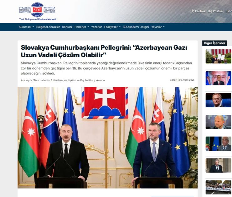 Türkiyə mediası da səfərlə bağlı məlumatlar yayıb. Türkiyənin Strateji Düşüncə İnstitutunun saytında yayımlanan məqalədə bildirilib ki, Prezident İlham Əliyevin slovakiyalı həmkarı ilə görüşdə enerji təchizatı təhlükəsizliyində Azərbaycanın rolunun artırılması, müdafiə sənayesi sahəsində texnologiya transferi və birgə istehsal perspektivləri müzakirə olunub. Slovakiya tərəfi Azərbaycanın enerji resurslarının alternativ mənbə kimi əhəmiyyətini yüksək qiymətləndirib. Prezident İlham Əliyev isə qaz tədarükünü genişləndirməyə və Slovakiyanın texnoloji təcrübəsi ilə Azərbaycanın maliyyə imkanlarını birləşdirərək, dünya bazarlarına çıxacaq yeni müdafiə məhsulları hazırlamağa hazır olduqlarını bildirib.