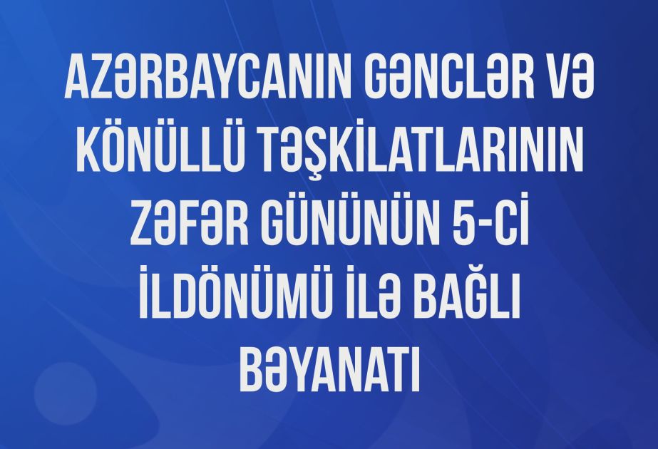 Azərbaycan Respublikası Gənclər Təşkilatları Milli Şurası (NAYORA) və Azərbaycan Könüllü Təşkilatları İttifaqı (AKTİ) Zəfər Gününün beşinci ildönümü ilə əlaqədar birgə bəyanat yayıb.