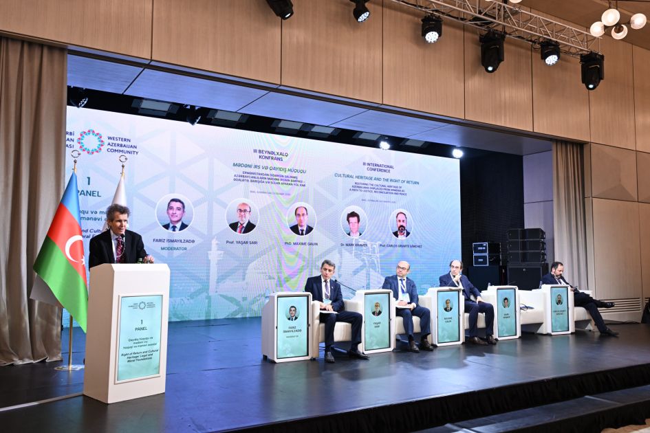 Qərbi Azərbaycan İcmasının təşkilatçılığı ilə “Mədəni irs və qayıdış hüququ: Ermənistandan didərgin salınmış azərbaycanlıların mədəni irsinin bərpası – ədalətə, barışığa və sülhə aparan yol kimi” mövzusunda keçirilən ənənəvi III beynəlxalq konfrans çərçivəsində Milli Məclisin deputatı və ADA Universitetinin prorektoru Fariz İsmayılzadənin moderatorluğu ilə qayıdış hüququnun hüquqi və mənəvi əsaslarının təhlilinə həsr olunmuş ilk panel müzakirəsi təşkil olunub.