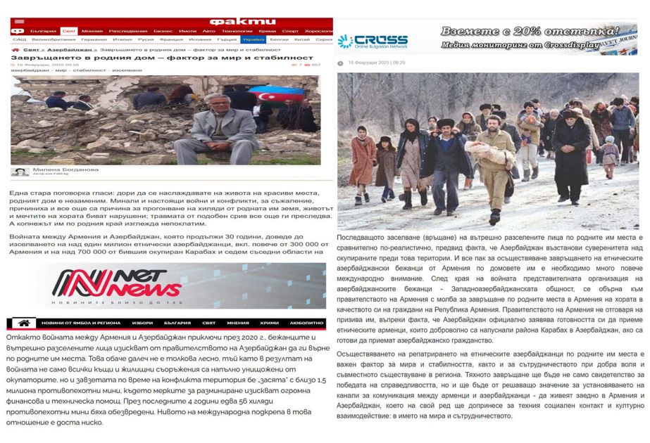 Bolqarıstan mətbuatında azərbaycanlıların doğma torpaqlarına qayıdışı geniş işıqlandırılıb