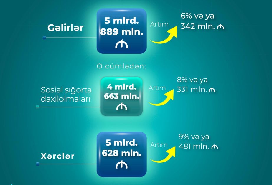 Nazirliyin İctimaiyyətlə əlaqələr şöbəsindən AZƏRTAC-a verilən məlumata görə, fondun gəlirləri tərkibində məcburi dövlət sosial sığorta daxilolmaları həmin dövrdə proqnoza nisbətən 8 faiz və ya 331 milyon manat artaraq 4 milyard 663 milyon manat olub.