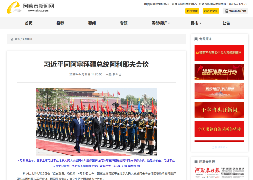 “Altai News Network” saytı yazır ki, Azərbaycan və Çin bir-birinə hörmət və etimadla yanaşır, bütün sahələrdə əməkdaşlığı, iqtisadi-ticari əlaqələri, o cümlədən rəqəmsal iqtisadiyyat, yaşıl enerji, elm və texnologiya sahələrində əməkdaşlığı genişləndirir, xalqlar arasında təmasların daha da sıxlaşmasına çalışırlar. Bundan başqa, tərəflər hakim partiyalar arasında əlaqələrin dərinləşməsi, beynəlxalq və regional məsələlərdə əlaqələndirmənin gücləndirilməsi istiqamətində səylərini davam etdirirlər.