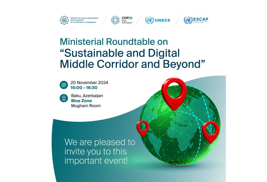 Noyabrın 20-də Bakıda COP29 çərçivəsində nazirlərin “Dayanıqlı, rəqəmsal Orta Dəhliz və onun hüdudlarından kənar” mövzusunda dəyirmi masası keçiriləcək.