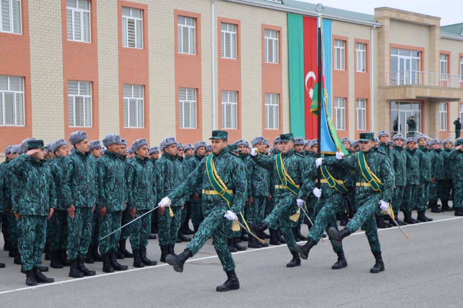 Dövlət sərhədlərini şərəflə qorumaq məsuliyyətini öz üzərilərinə götürən gənc əsgərlər hərbi anda daim sadiq qalacaqlarına söz veriblər.