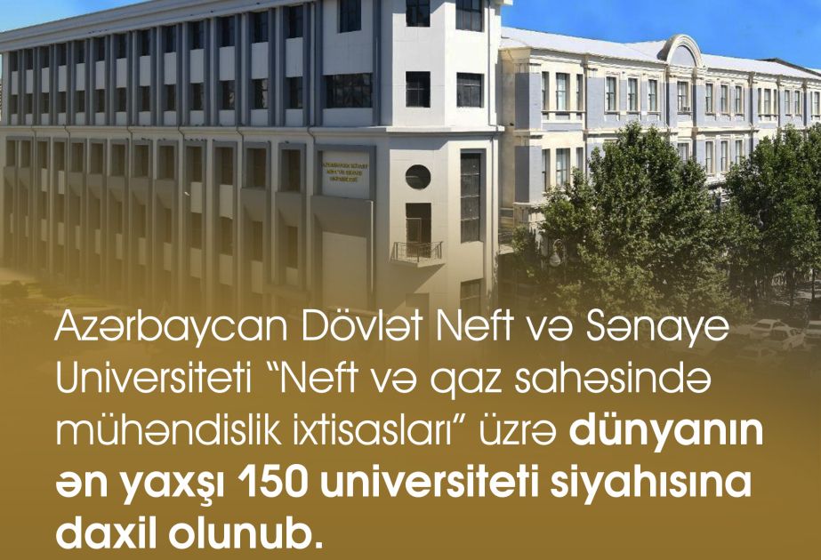 Azərbaycan Dövlət Neft və Sənaye Universiteti “Neft və qaz sahəsində mühəndislik ixtisasları” üzrə dünyanın ən yaxşı 150 universiteti siyahısına daxil edilib.