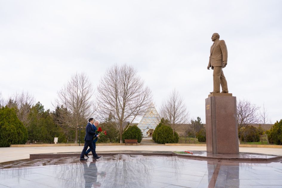 Nazirliyin mətbuat xidmətindən AZƏRTAC-a verilən məlumata görə, əvvəlcə Ümummilli Lider Heydər Əliyevin abidəsini ziyarət edilib və önünə gül dəstəsi qoyulub.