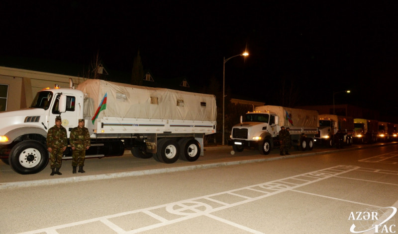 AZƏRTAC xəbər verir ki, humanitar yardıma dağıntılardan ziyan çəkmiş insanların yerləşdirilməsi üçün 260 ədəd çadır, 300 ədəd çarpayı, 2 ədəd böyük gücə malik generator, 8000 geyim dəsti, 20000 cüt corab, 350 ədəd masa, 1000 ədəd oturacaq, 5000 ədəd iplik dəsmal və digər ləvazimatlar daxildir.