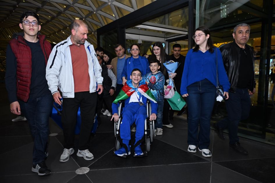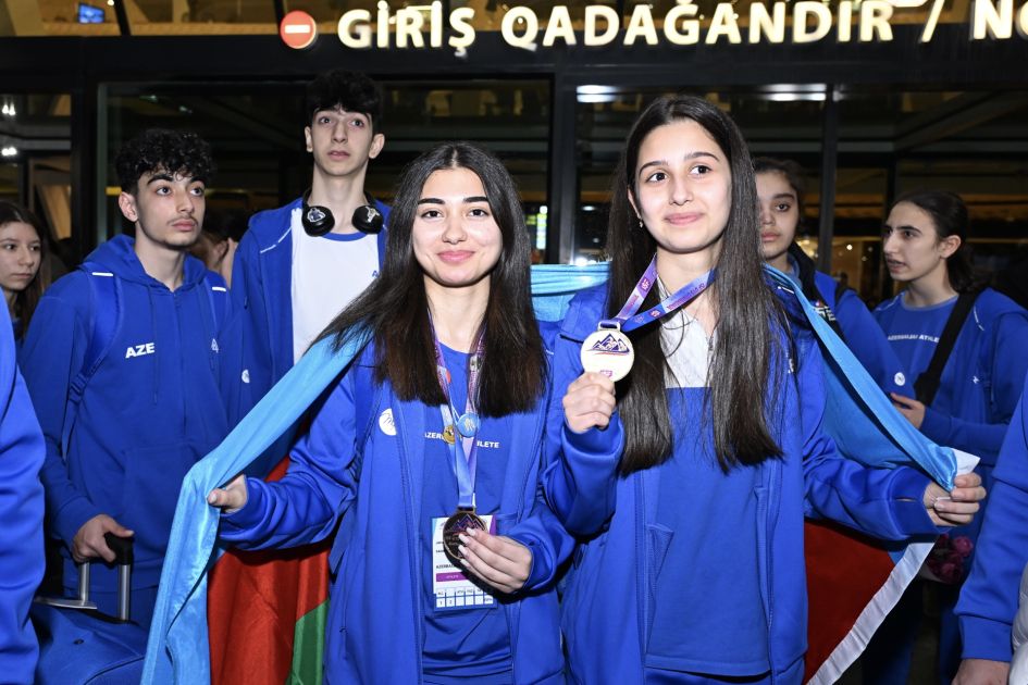 AZƏRTAC xəbər verir ki, onları Heydər Əliyev Beynəlxalq Aeroportunda media mənsubları, azarkeşlər və idmançıların yaxınları qarşılayıblar.