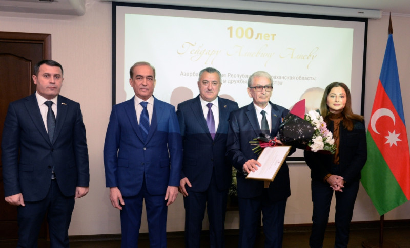 Həştərxandakı Azərbaycan İş Mərkəzində Ulu Öndər Heydər Əliyevin 100 illik yubileyinə həsr olunmuş tədbirlərdə iştirak edən şəxslərin mükafatlandırılması mərasimi keçirilib.