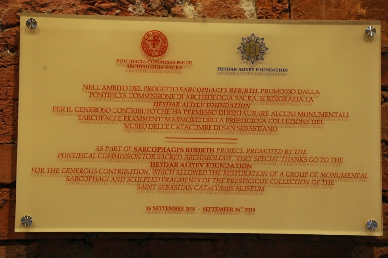 Heydər Əliyev Fondu tərəfindən Müqəddəs Sebastian Bazilikasındakı katakombalarının bərpası işlərinə 2016-cı ildə başlanılıb. Bu Bazilika IV əsrdə katakombaların üzərində inşa edilib. Ümumilikdə katakombalarda 8 minə yaxın sərdabə yerləşir. Katakombaların zəngin tarixi var. Onlar bütün xristian dünyası üçün mühüm əhəmiyyət daşıyır.