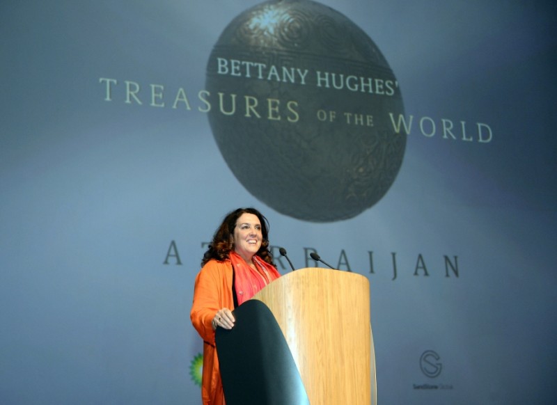Premyeradan öncə filmin müəllifi, tarixçi, yazıçı, aparıcı və məşhur “Dünya xəzinələri” sənədli filmlər silsiləsinin ssenari müəllifi və təqdimatçısı professor Bettani Hyuz da çıxış edib.