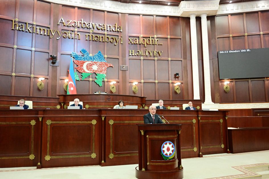Sonra Azərbaycan Respublikasının Baş naziri Əli Əsədov Nazirlər Kabinetinin 2024-cü ildə fəaliyyəti haqqında hesabatı təqdim edib.