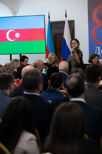 Rusiyanın Əməkdar artisti Valeriya Voronanın rəhbərliyi ilə təntənəli qəbulun musiqili proqramı çərçivəsində Moskva Gənclər Kamera Orkestrinin ifasında Qarayev, Vivaldi, Qriq və başqalarının klassik əsərləri səsləndirilib. Rusiya Teatr Sənəti İnstitutunun (GİTİS) gənc sənətçiləri və tələbələri Darya Kovalenko, Nina Bataşova və Yelizaveta Sokolova Üzeyir Hacıbəylinin “Koroğlu” operasından və “Arşın Mal Alan” operettasından ariyalar ifa ediblər.