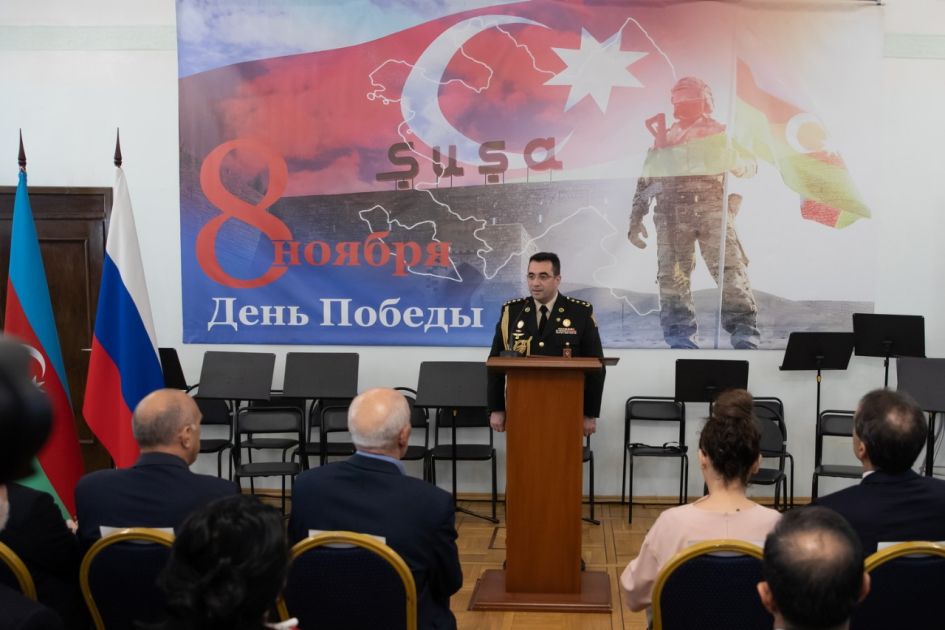 Tədbirin açılışında çıxış edən Azərbaycan Silahlı Qüvvələrinin Rusiyadakı hərbi attaşesi polkovnik Kənan Təhməzov vurğulayıb ki, Azərbaycan xalqı 30 ildən çox müddətdə itirilmiş torpaqlarının ağrısı ilə yaşayıb, lakin bu illər ərzində səbirlə qüdrətli dövlət və güclü bir ordu qurub. O, 44 günlük Vətən müharibəsi zamanı adları cəsarət rəmzinə çevrilən minlərlə qəhrəmandan bir neçəsini xatırladıb. Polkovnik əlavə edib ki, Azərbaycan xalqı haqlı olaraq Müzəffər Ali Baş Komandan, Prezident İlham Əliyevlə və ölkə vətəndaşlarına, həmçinin dünyanın hər yerindəki soydaşlarımıza Qələbə sevinci bəxş edən cəsur Ordusu ilə fəxr edir.