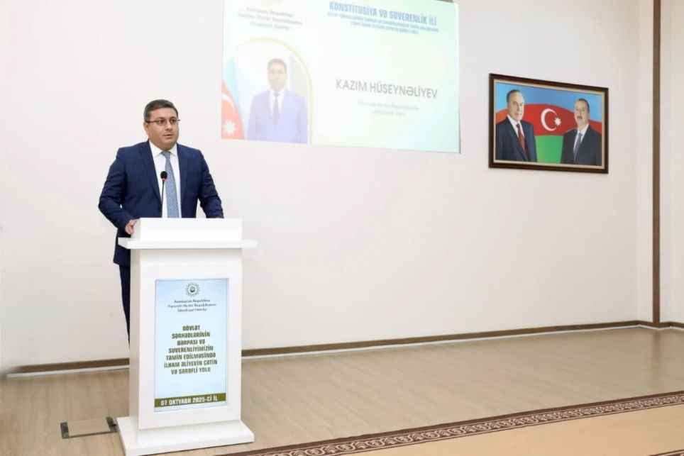 Naxçıvan Muxtar Respublikasının İqtisadiyyat Nazirliyində “Konstitusiya və Suverenlik İli” çərçivəsində “Dövlət sərhədlərinin bərpası və suverenliyimizin təmin edilməsində cənab İlham Əliyevin çətin və şərəfli yolu” mövzusunda tədbir keçirilib.