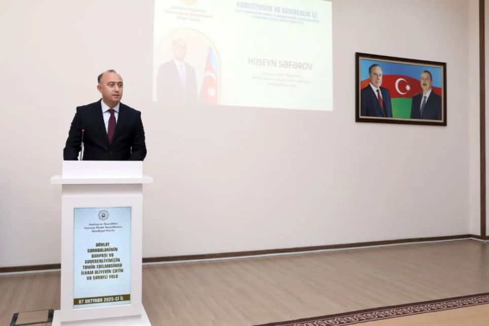 Naxçıvan Muxtar Respublikası ədliyyə nazirinin müavini, nazir vəzifələrini müvəqqəti icra edən Hüseyn Səfərov Ulu Öndər Heydər Əliyevin dövlət quruculuğu fəaliyyətindən danışıb. Vurğulayıb ki, Ümummilli Lider müstəqil Azərbaycanın qanunvericilik sisteminin formalaşmasında həlledici rol oynayıb və milli hüquqi dövlətçiliyin əsasını qoyub. Prezident cənab İlham Əliyevin rəhbərliyi ilə ölkəmizin hüquq sisteminin inkişafı və təkmilləşdirilməsi istiqamətində mühüm addımlar atılıb.
