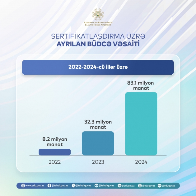 Son 2 il ərzində keçirilən sertifikatlaşdırma imtahanlarının nəticələrinə əsasən, 2023-cü ilin IV rübü üzrə təhsilverənlərin orta aylıq əməkhaqqı 830 manata çatacaq.