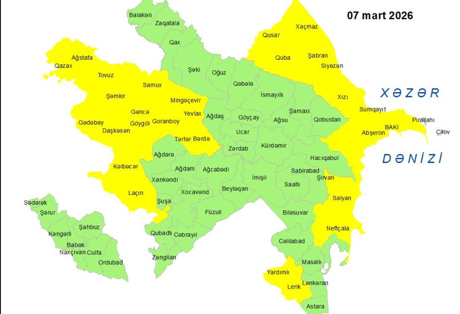 Küləkli hava şəraiti ilə bağlı sarı xəbərdarlıq verilib