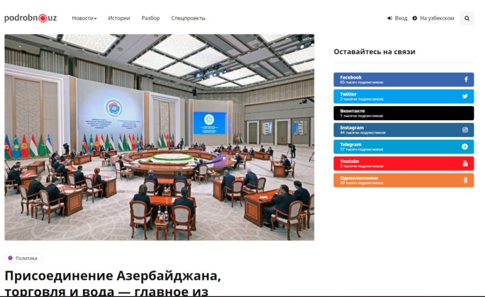“Podrobno.uz” vurğulayıb ki, Azərbaycanın Mərkəzi Asiya Dövlət Başçılarının Məşvərət Görüşünün tamhüquqlu üzvü olması regionun nəqliyyat və tranzit əlaqələrinin genişlənməsinə və iqtisadi inkişafa böyük təkan verəcək. Mərkəzi Asiyanın dünya iqtisadiyyatına inteqrasiyası daha dolğun formada təmin olunacaq.