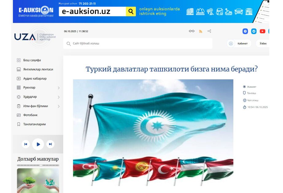 Agentlik qeyd edir ki, Özbəkistan Prezidenti Şavkat Mirziyoyev Azərbaycan Prezidenti İlham Əliyevin dəvəti ilə oktyabrın 6-7-də Azərbaycanda işgüzar səfərdə olacaq və Türk Dövlətləri Təşkilatının (TDT) “Regional sülh və təhlükəsizlik” devizi altında Qəbələdə keçiriləcək 12-ci Zirvə Görüşündə iştirak edəcək. “Gündəlik qarşılıqlı ticarət və investisiyaların artırılmasından tutmuş logistika, enerji layihələri və humanitar proqramların sinxronlaşdırılmasına qədər mühüm məsələləri əhatə edir. Əsas diqqət müqavilələrin dəqiq müddətləri və məsuliyyətli icraçıları olan konkret mexanizmlərə çevrilməsinə yönəlib. İştirakçı ölkələr arasında əməkdaşlığın daha da gücləndirilməsinə istiqamətlənmiş razılaşdırılmış qərarların qəbulu və sənədlərin imzalanması gözlənilir”, -deyə məqalədə vurğulanır.
