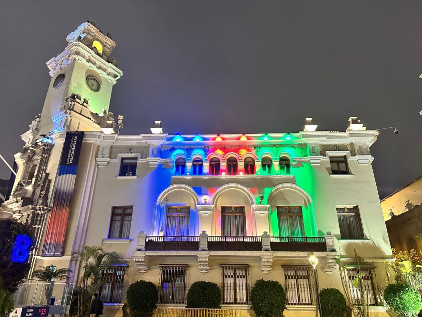 Peruda bələdiyyə binası Azərbaycan Bayrağının rəngləri ilə işıqlandırılıb