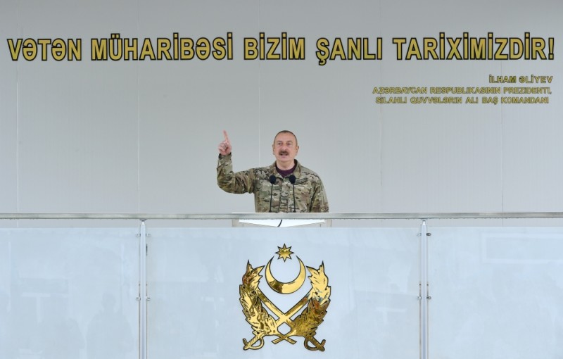Müzəffər Ali Baş Komandan İlham Əliyevin rəhbərliyi ilə Azərbaycan Ordusu Vətən müharibəsində zəfər çalaraq erməni işğalçılarını kapitulyasiyaya məcbur etdi, düşməni qovaraq ərazi bütövlüyünə nail oldu.
