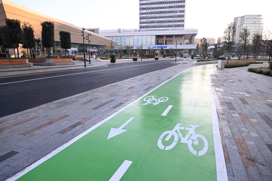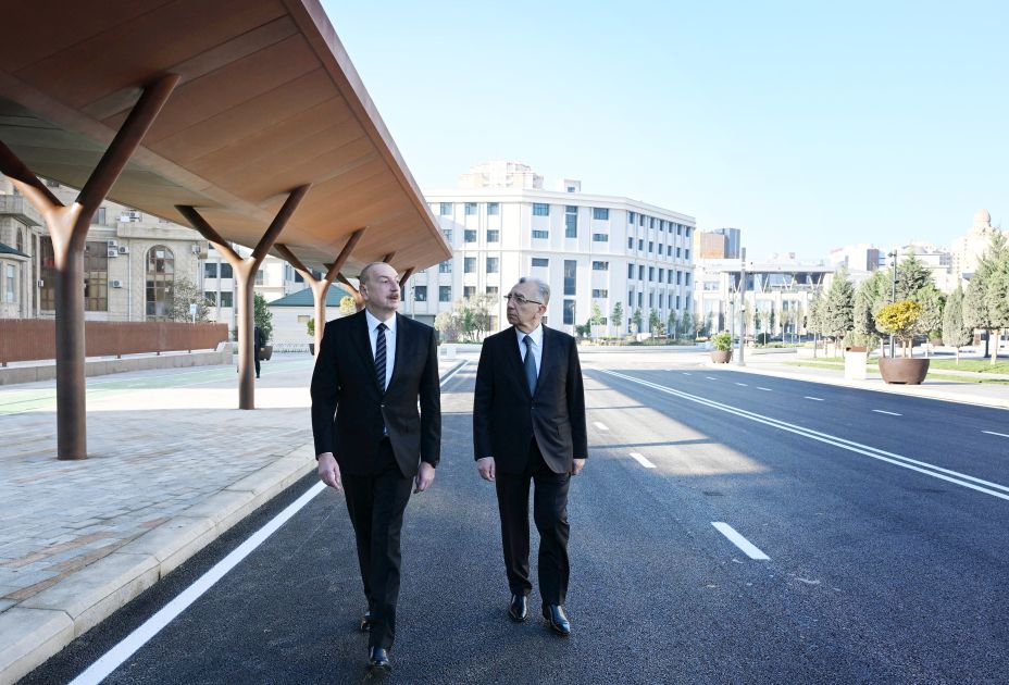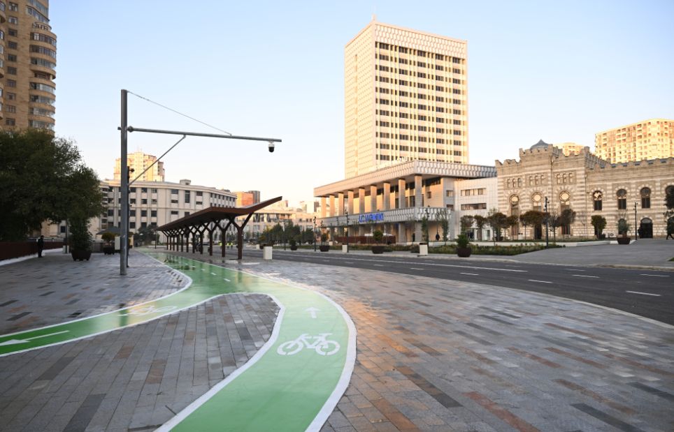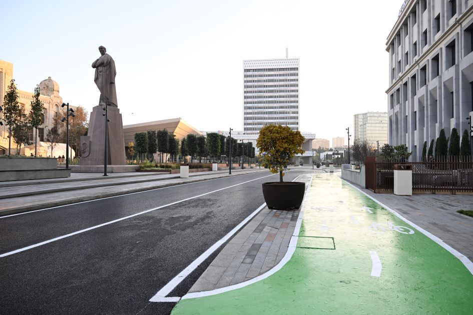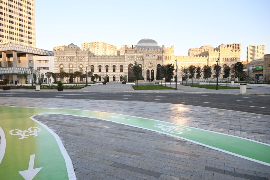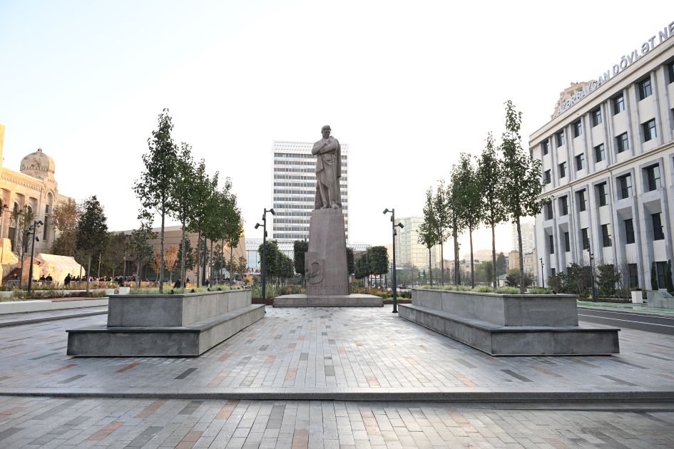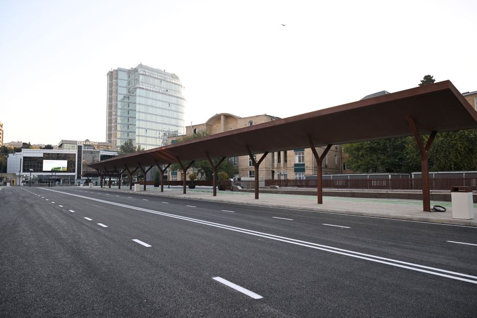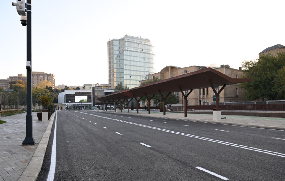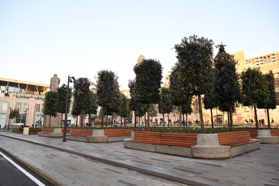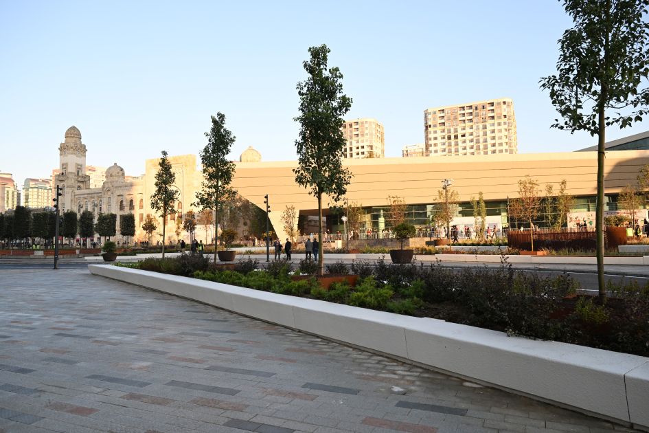 Bildirildi ki, ümumi sahəsi 3,5 hektar olan ərazidə minik avtomobillərinin hərəkəti ləğv edilərək, müasir tələblərə cavab verən avtobus, piyada və velosiped zolaqları yaradılıb. Köhnə döşəmə örtükləri ləğv edilərək, qranit bordürlər düzülüb və təqribən 22 min kvadratmetr qranit döşəmə örtüyü salınıb. Ərazidə ümumi sahəsi təqribən 2300 kvadratmetr olan yaşıllıq yaradılıb, İtaliyadan gətirilmiş 200-dən çox ağac, 15 mindən çox kol əkilib, işıqlandırma işləri aparılıb, müasir oturacaqlar quraşdırılıb. Həmçinin müasir tikinti norma və qaydalarına cavab verən 2 fəvvarə, 2 dayanacaq inşa edilib, elektrik avtobusları üçün 4 enerjidoldurma məntəqəsi quraşdırılıb.