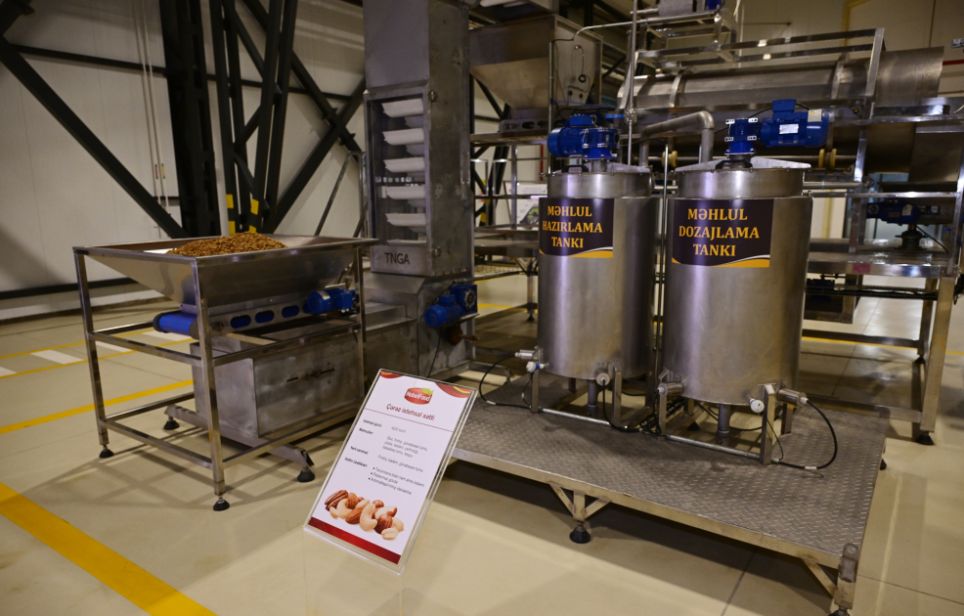 “Azərsun Holdinq”ə məxsus “Qafqaz” konserv zavodu və “Shervan” MMC-nin həmtəsisçiliyi ilə istismara verilən bu müəssisədə müxtəlif növ və çeşiddə qəlyanaltı məhsulları - popkorn, çərəz və quru meyvə istehsal olunacaq. Məhsulların yerli istehlakçılara təqdim edilməsi ilə bərabər, müxtəlif ölkələrə ixracı da nəzərdə tutulur. İllik istehsal həcmi 9600 ton olan zavodda dünyanın aparıcı ölkələrinin müasir avadanlıqları quraşdırılıb. İstehsalatda istifadə ediləcək günəbaxan, badam, fındıq kimi məhsullar yerli xammal hesabına təmin olunacaq. Ümumi sahəsi 7 hektardan çox olan müəssisədə 210 nəfər daimi işlə təmin ediləcək. Zavodun ümumi investisiya dəyəri 38 milyon manat təşkil edir ki, bunun da 5 milyon manatı Azərbaycan Biznesinin İnkişafı Fondu tərəfindən ayrılmış güzəştli kreditdir.