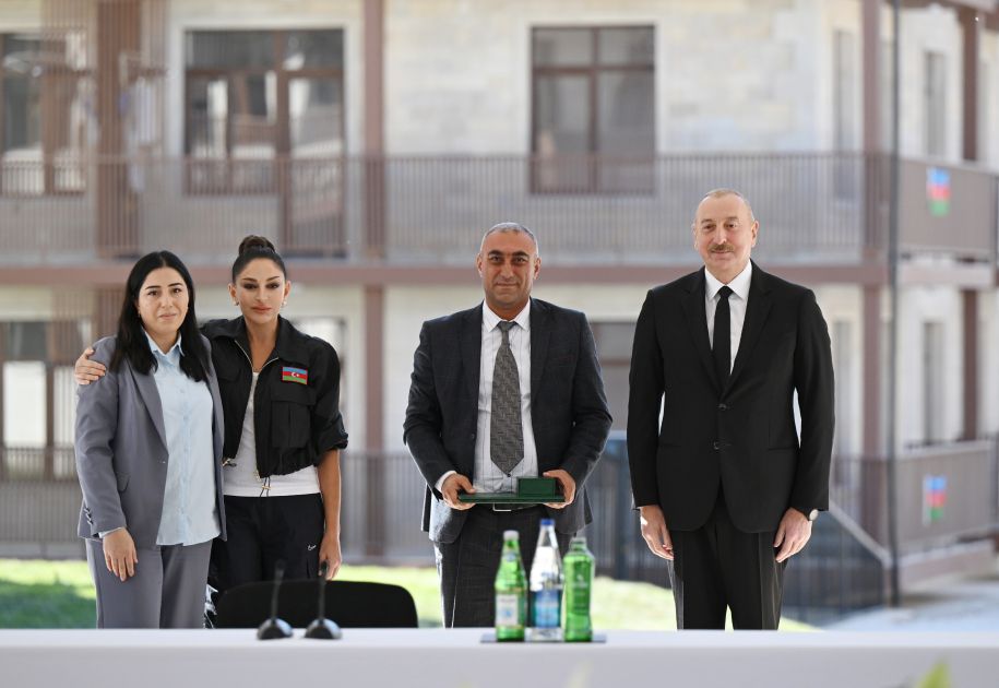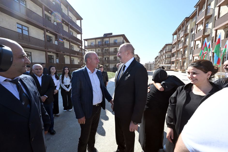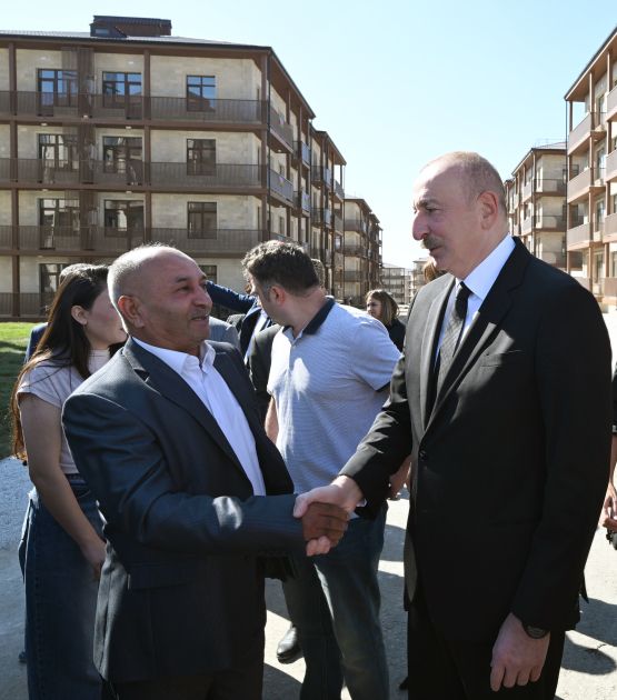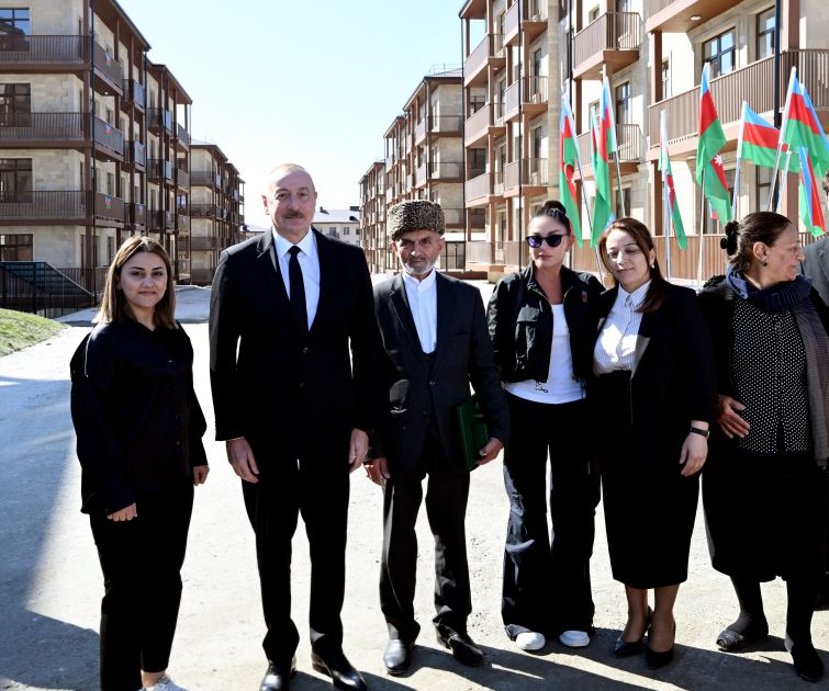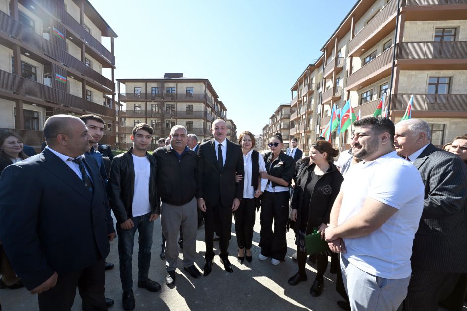 Sizə isə mən burada xoşbəxt həyat arzulayıram. Siz buna layiqsiniz. Siz uzun illər çadırlarda, qaçqın düşərgələrində yaşamısınız. Biz imkan daxilində çalışmışıq ki, həyatınızı bir az yüngülləşdirək. Burada artıq 100-dən çox insan məskunlaşıb, bu gün də, dünən də gələnlər var. Onlardan bir hissəsi Biləsuvardakı qaçqın şəhərciyində yaşamışdır. Yəqin ki, mənim o şəhərciyə gəlişimi xatırlayan da var. Birinci dəfə 20 il bundan əvvəl orada olmuşam. Çalışmışıq ki, yeni mənzillər, yeni evlər tikək və təqribən 300 minə yaxın, bəlkə də çox keçmiş köçkün 2020-ci ilə qədər normal şəraitlə təmin edilmişdir. Ancaq ondan da çox insan ağır vəziyyətdə yaşamışdır. Ona görə bu gözəl binalarda yaşamaq sizin haqqınızdır, siz buna layiqsiniz. Əminəm ki, bu torpaqlarda yaşamış və oradan köçmüş, eyni zamanda, bu torpaqları heç vaxt görməmiş sizin uşaqlarınız, nəvələriniz burada rahat və xoşbəxt yaşayacaq, öz dövləti ilə, xalqı ilə həmişə fəxr edəcəkdir. Bir daha sizi təbrik edirəm.