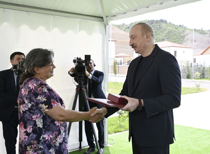 Həyat yoldaşı: Cənab Prezident, 2012-ci il dekabrın 24-də laçınlı keçmiş məcburi köçkünlər üçün Ağcəbədi rayonunda salınmış Taxtakörpü qəsəbənin açılışına gələndə Siz demişdiniz ki, - mən də onda xidmət edirdim, - inşallah, torpaqlarımız azad olunacaq, bundan da yaxşı evlər tikib sizə açarları təqdim edəndə deyəcəksiniz ki, cənab Prezident, bizim şəhərimizə, bizim kəndimizə xoş gəlmisiniz.