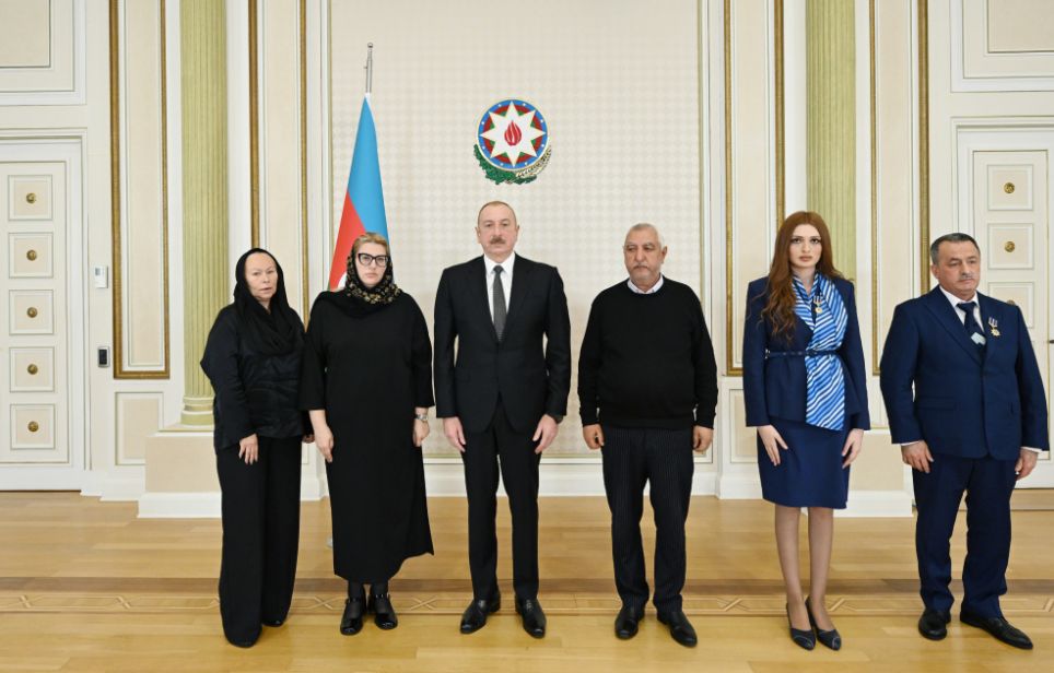 Mən həlak olanların ailə üzvlərini, eləcə də ekipaj üzvlərini bu yüksək mükafatları şəxsən sizə təqdim etmək, sizə bir daha başsağlığı vermək və Azərbaycan dövlətinin hər zaman sizinlə olacağını bəyan etmək üçün dəvət etdim. Mən sizə müraciət və xahiş etmək istəyirəm ki, həyatın istənilən şəraitində sizin arxanızda güclü Azərbaycan dövlətinin dayandığını biləsiniz. Rəqəmsal İnkişaf və Nəqliyyat Nazirliyinə, həmçinin “Azərbaycan Hava Yolları” QSC-yə sizinlə daimi əlaqə saxlamaq və sizi narahat edən məsələləri operativ şəkildə həll etmək tapşırılıb.