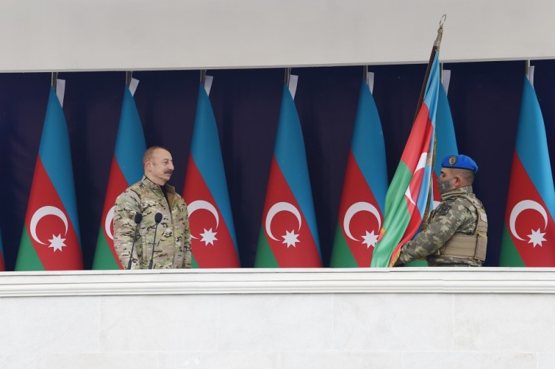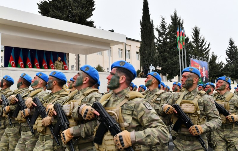 Bu gün Hadrutda yeni hərbi hissənin açılması bir daha demək istəyirəm ki, çox əlamətdar hadisədir. Həm ona görə ki, bu bölgə strateji əhəmiyyət daşıyır; Hadrutda bizim güclü silahlı birləşməmiz təhlükəsizliyimizi, ölkəmizin təhlükəsizliyini qoruyacaq, - digər tərəfdən ona görə ki, bu, azad edilmiş keçmiş Dağlıq Qarabağ Muxtar Vilayətinə aid olmuş yerdə yerləşir. Eyni zamanda, bu hərbi hissənin ən böyük əhəmiyyəti ondan ibarətdir ki, biz müharibədən sonra ordu quruculuğu prosesini dayandırmamışıq və orduya ayrılan xərcləri azaltmamışıq, əksinə, artırmışıq. Müharibədən sonra imzalanmış yeni kontraktlar icra edilir. Yeni kontraktlar əsasında artıq Azərbaycana Ordumuzun təchizatı üçün ən müasir silahlar, texnikalar gətirilir. Biz bunu heç vaxt gizlətmirdik və işğal dövründə hərbi paradlarda dəfələrlə nümayiş etdirmişdik. Həm hərbi texnikanın alınması, həm hərbi xərclərin artırılması, eyni zamanda, hərbçilərin maaşlarının artırılması, – bütün bunlar göz qabağındadır, - onu göstərir ki, müharibə başa çatsa da, ordu quruculuğu prosesi dayanmayacaq. Əksinə, müharibə təcrübəsi bizə göstərdi ki, güclü yerlərimiz haradadır və qüsurlarımız haradadır. Müharibə dövründə qüsurlarımız çox deyildi, amma olub. Ona görə müharibə bizim üçün əvəzolunmaz təcrübə idi. Müharibədən sonra həm müasir tələbələrə cavab verən silah-sursat, texnikalar alınır, eyni zamanda, yeni silahlı birləşmələr yaradılır. Bax, bu gün Hadrutda bu hərbi hissədə yeni hərbi birləşmənin nümayəndələri, komando qüvvələri yerləşir. Komando Briqadasının yaradılması bizim üçün yenilikdir. Bir yox, iki yox, bir çox Komando briqadaları artıq Azərbaycanda yaradılır və bu briqadalar istənilən hərbi vəzifəni icra etməyə qadir olacaqlar. Yüksək təlim keçmiş, yüksək iradə nümayiş etdirmiş və Vətən uğrunda özlərini fəda etməyə hazır olan övladlarımız bu briqadalarda xidmət edəcəklər. Bu, bizim ordumuzun gücünü böyük dərəcədə artıracaq. Bir daha demək istəyirəm ki, belə briqadalar çox olacaq, minlərlə hərbçimiz bu briqadalarda xidmət edəcəklər. Beləliklə, Azərbaycan Ordusu bundan sonra da öz peşəkarlığını və yüksək mənəvi ruhunu qoruyacaqdır.