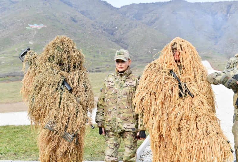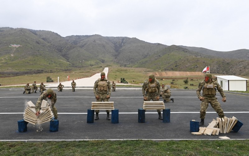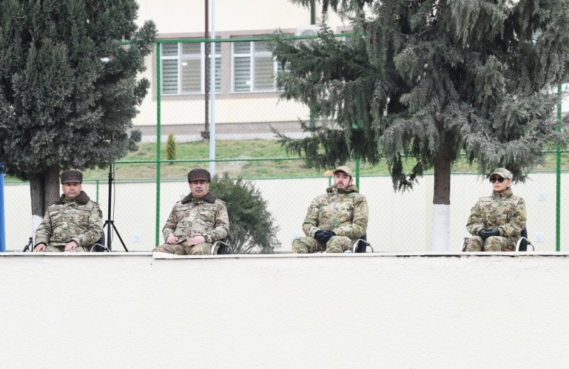 Daha sonra dövlətimizin başçısı, birinci xanım və oğulları təlim mərkəzi ilə tanış oldular və hərbçilərin nümunəvi çıxışlarına, “pusqu”, “basqı”, “sızma” əməliyyatlarına baxdılar. Əsgərlərin universal bacarıqlarını nümayiş etdirdilər.