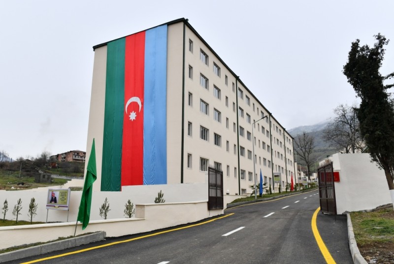 Sonra Prezident İlham Əliyev, birinci xanım Mehriban Əliyeva və oğulları Heydər Əliyev şəhidlərin xatirə guşəsinin önünə gül qoydular, hərbi hissənin qərargahında, idman zalında, yeməkxanada, zabitlər üçün evlərdə yaradılan şəraitlə tanış oldular.